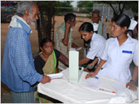 Chilkur, Sankarpally, Narsingi villages in different parts of the state and slums in and around Hyderabad. Over 20 medium level camps are organized at surrounding villages of Hyderabad. To cater the need of the surrounding villages of Bandlaguda Jagir, Hyderabad, A Free Clinic was initiated by His Holiness Sri Sri Sri Guru Viswa Sphoorthi in 2006 at the Spiritual Centre Dhyana(Mano)Prasthan. The clinic, named as ‘Sphoorthi Free Clinic’ also serves the patients who have attended Multi specialty camps and need further treatment. Over 40000 patients are benefited till date from the camps and follow up clinics in Andhra Pradesh.
