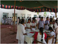 Multi-Specialty Free Medical Camps As part of medical activities, Multi-Specialty free medical camps are conducted for the benefit of the poor and needy. These medical camps are hosted with specializations of General Medicine, Gynecology, Pediatrics, Orthopedics, Dermatology, Ophthalmology and ENT. In each large medical camp about 3000 patients are served by about 50 Doctors, 50 paramedical staff and about 200 volunteers of the Organization. Consultation, Diagnostics like Blood Pressure and Blood Sugar Check-up, Blood Tests, Urine Tests, ECG and Medicine are administered completely free to the patients. Apart from medication, counseling sessions are conducted to increase awareness of people on hygienic habits, about Nutrition, AIDS etc. Women patients are counseled for cancer, menopause and pregnancy related aspects. Basics of Asana Pranayama Dhyana Prakriya are also taught to the patients.